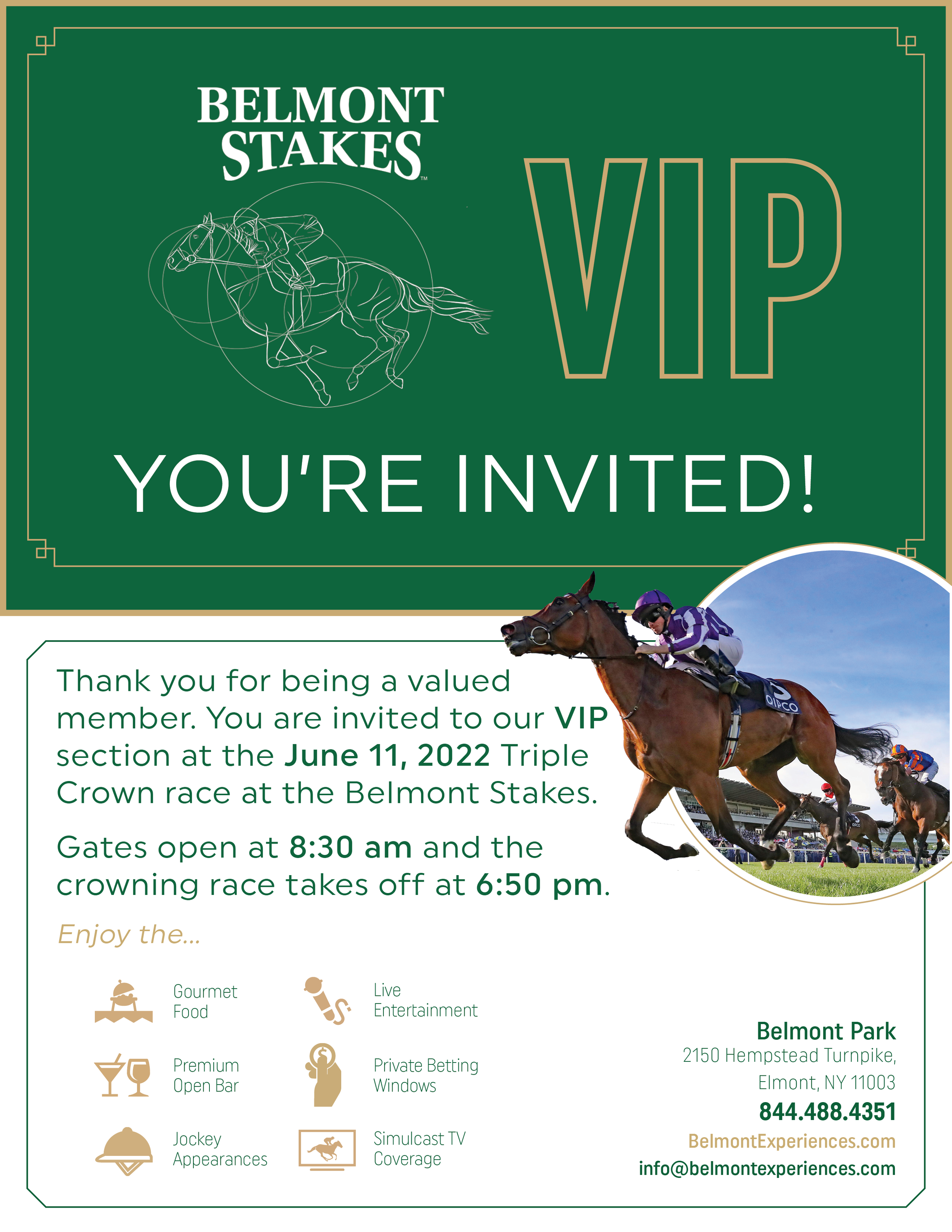 For this event, I also created VIP invitations. The Belmont Stakes has been around since 1867, so it is quite established and has members that attend the race yearly, as well as families that have attended for generations. For these people, they do not need information about what the Belmont is, so I included the things that change such as the date and times. I also added the accommodations of the Diamond Room and Clubhouse to remind them what they are paying for, as well as the address and contact information for those who need it.